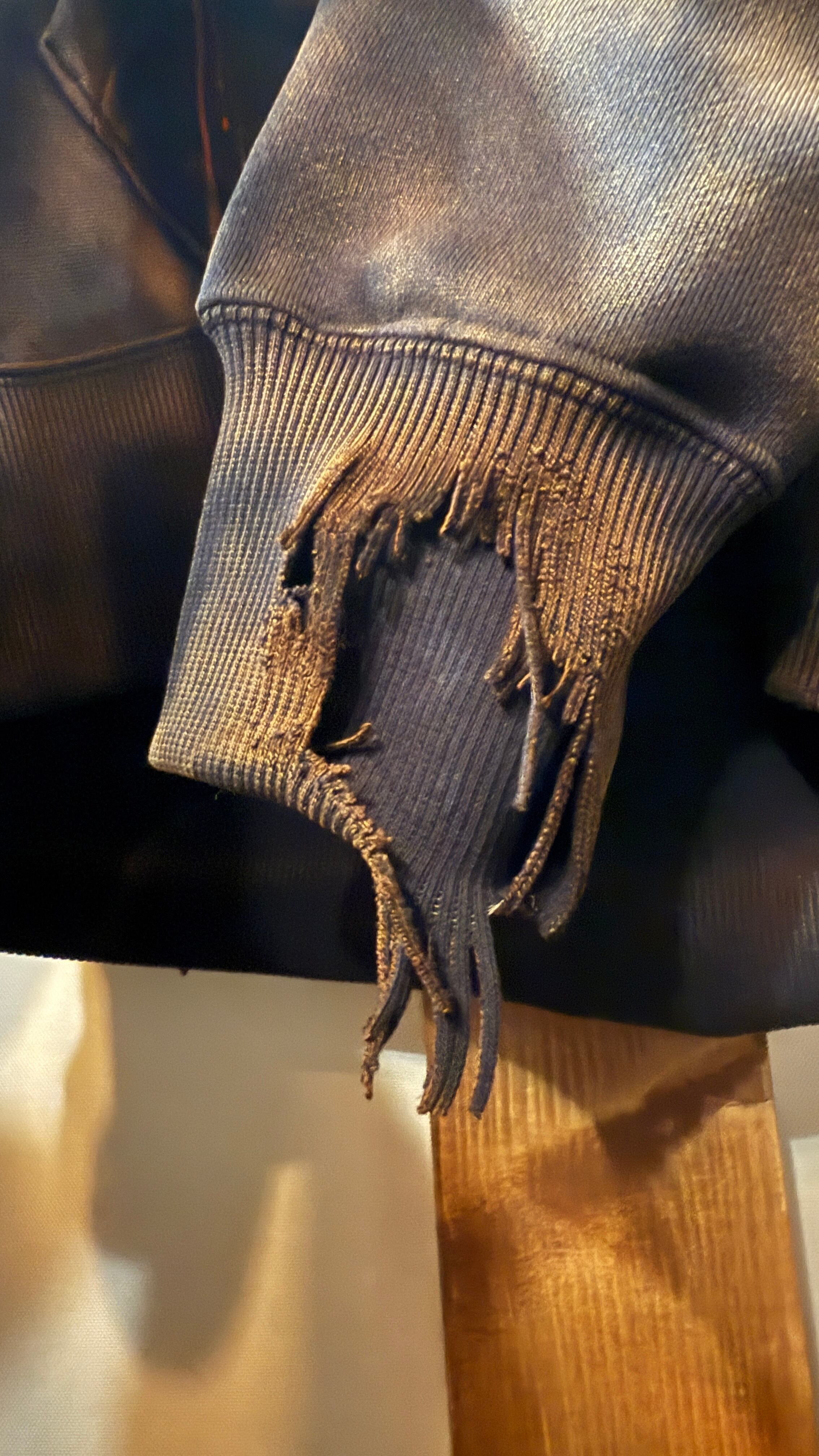 ・バーナーを使用したダメージ加工を施しているので焦げ臭さがあります。